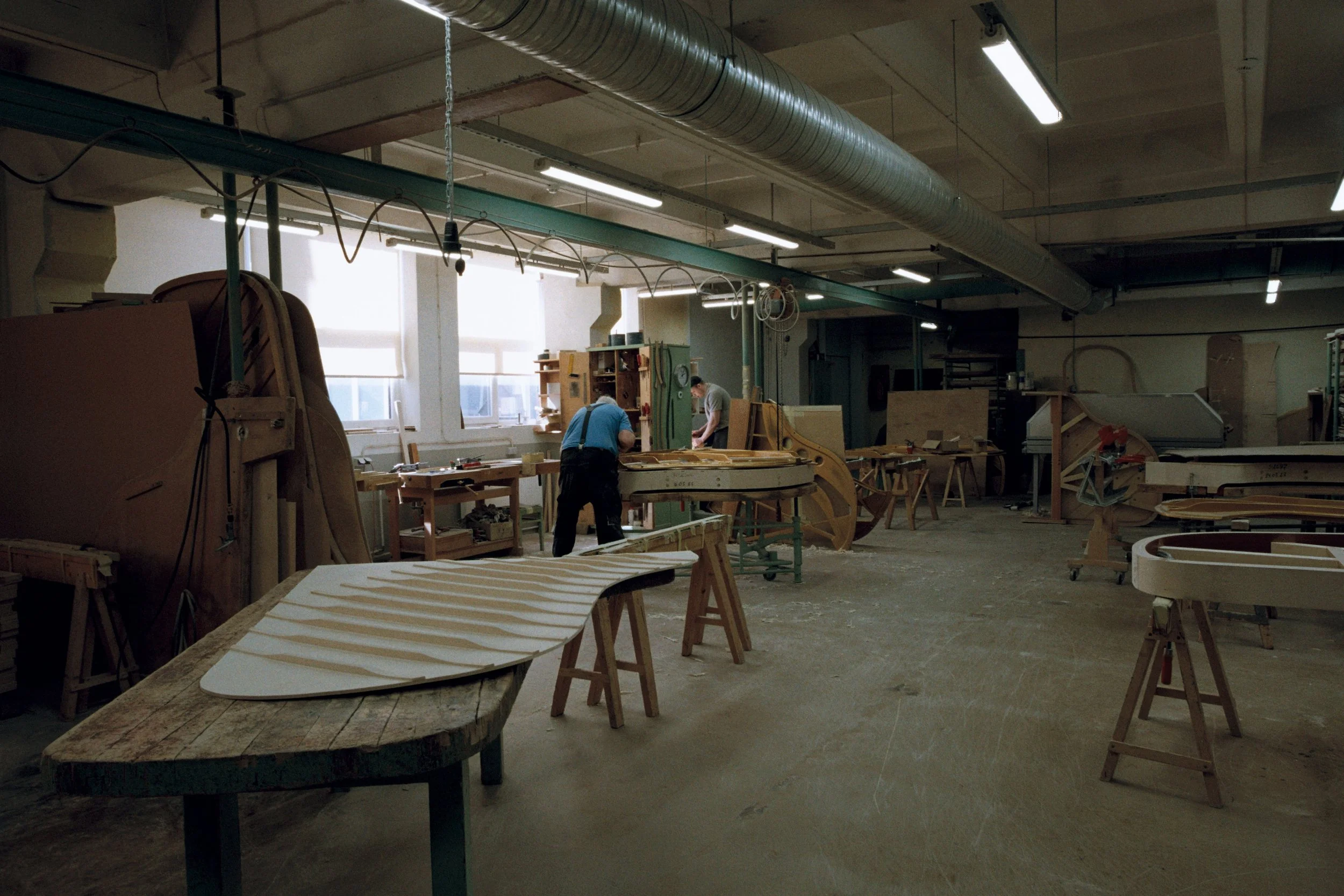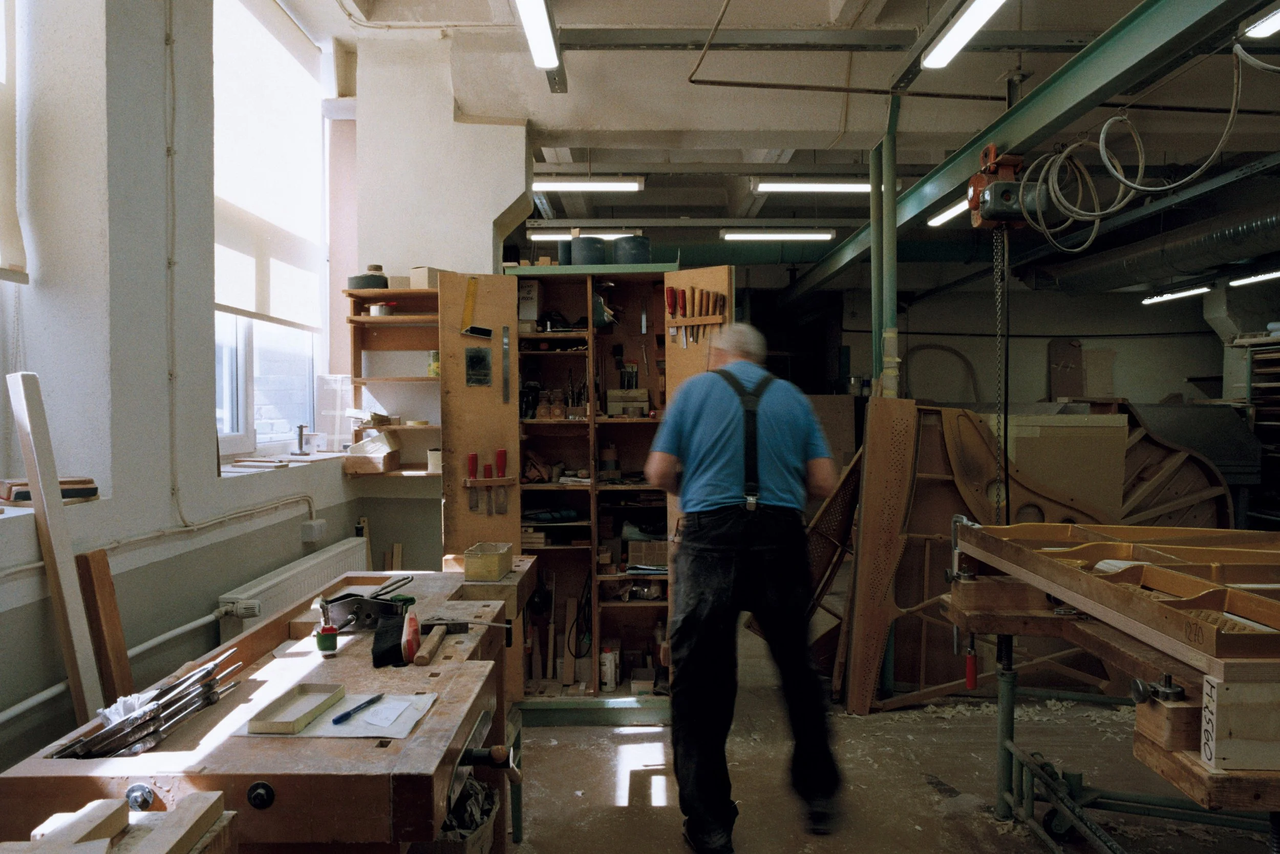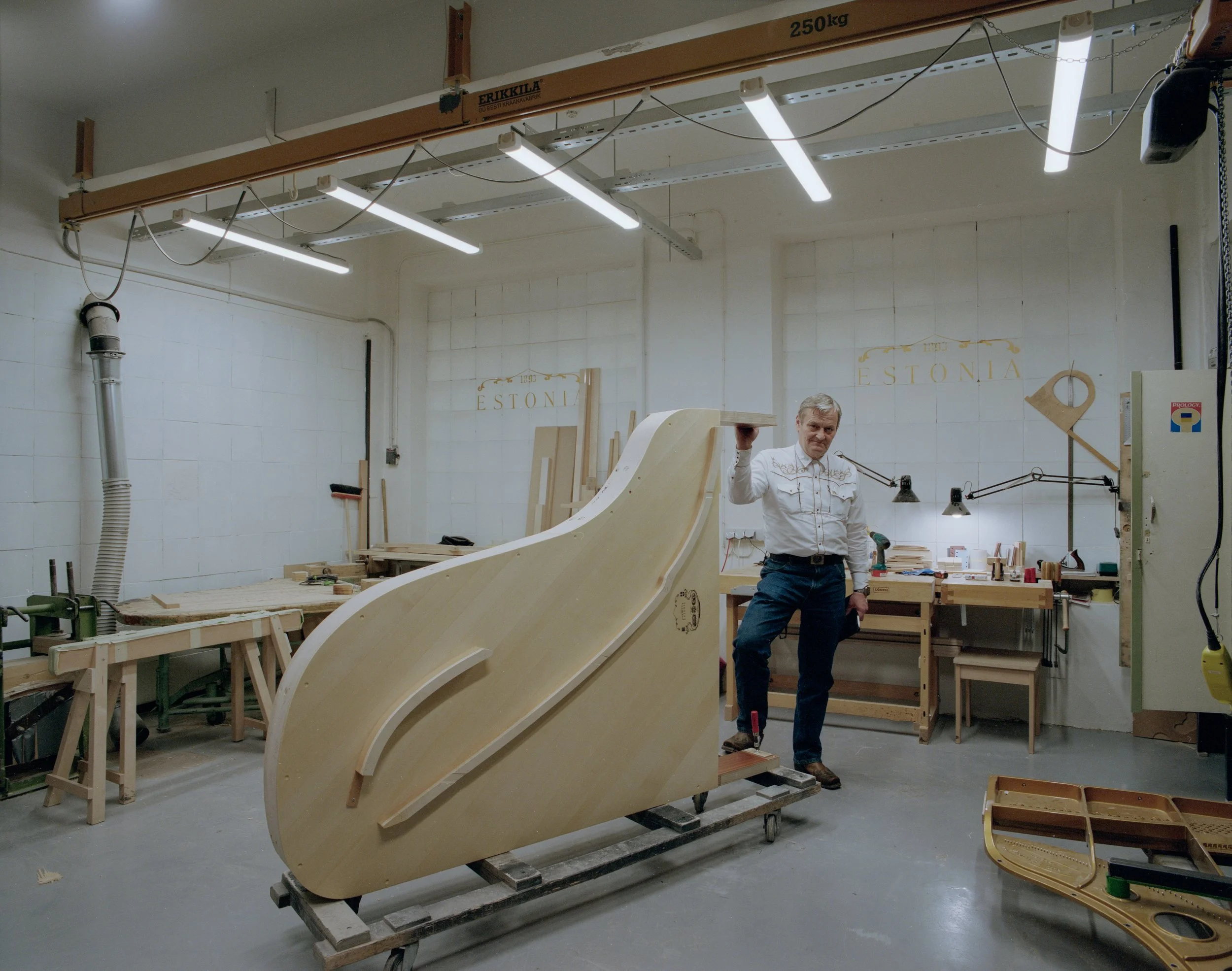 As I walked through the front door of the factory I saw the golden emblem ‘‘ Estonia 1893 ’’ on the wall, stating the long history of the company. On my right, there was a small window to a workshop where different type of woodwork was being made. I noticed a man in a suit walking in the sawdust through the artisans. He opened the door and greeted me with a warm smile. He was Indrek Laul the CEO of the Estonia Piano company. He then gave me a tour of the whole building which had five floors for manufacturing.